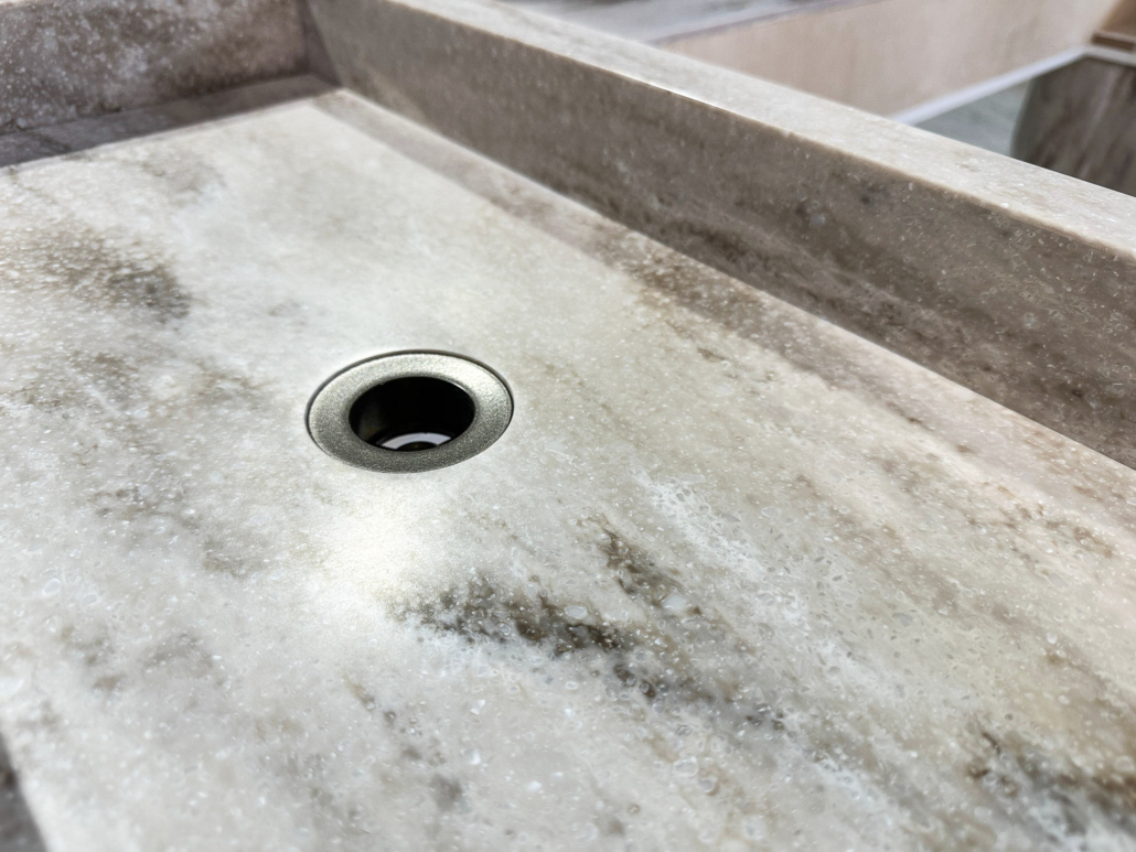 - Aufsatzbecken: Ein kubisches Becken (ca. 700 x 350 x 100 mm) mit präzise gefrästem Boden und leichtem Gefälle.